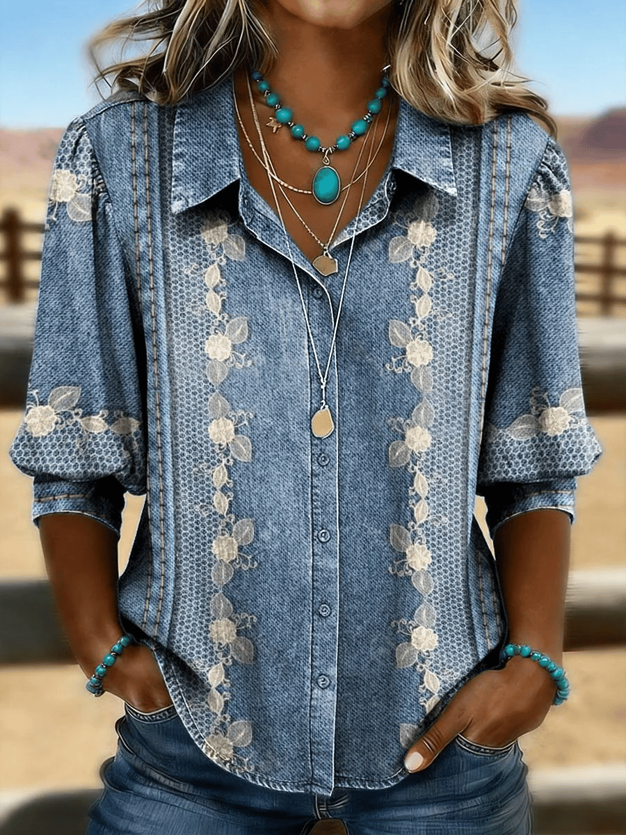 Women's Casual Retro Floral Print Shirt